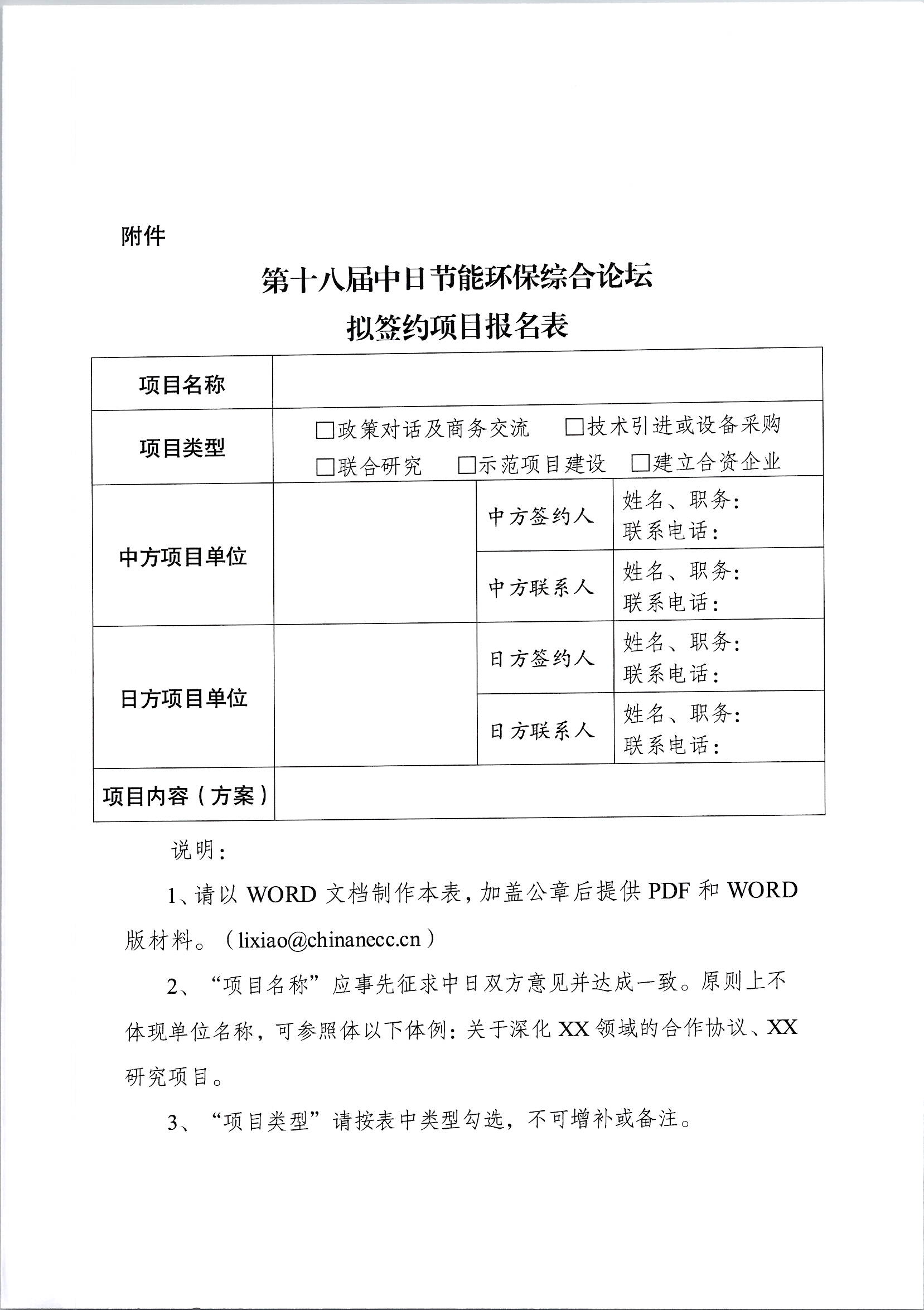 第十八届中日节能环保综合论坛拟签约项目报名表.docx