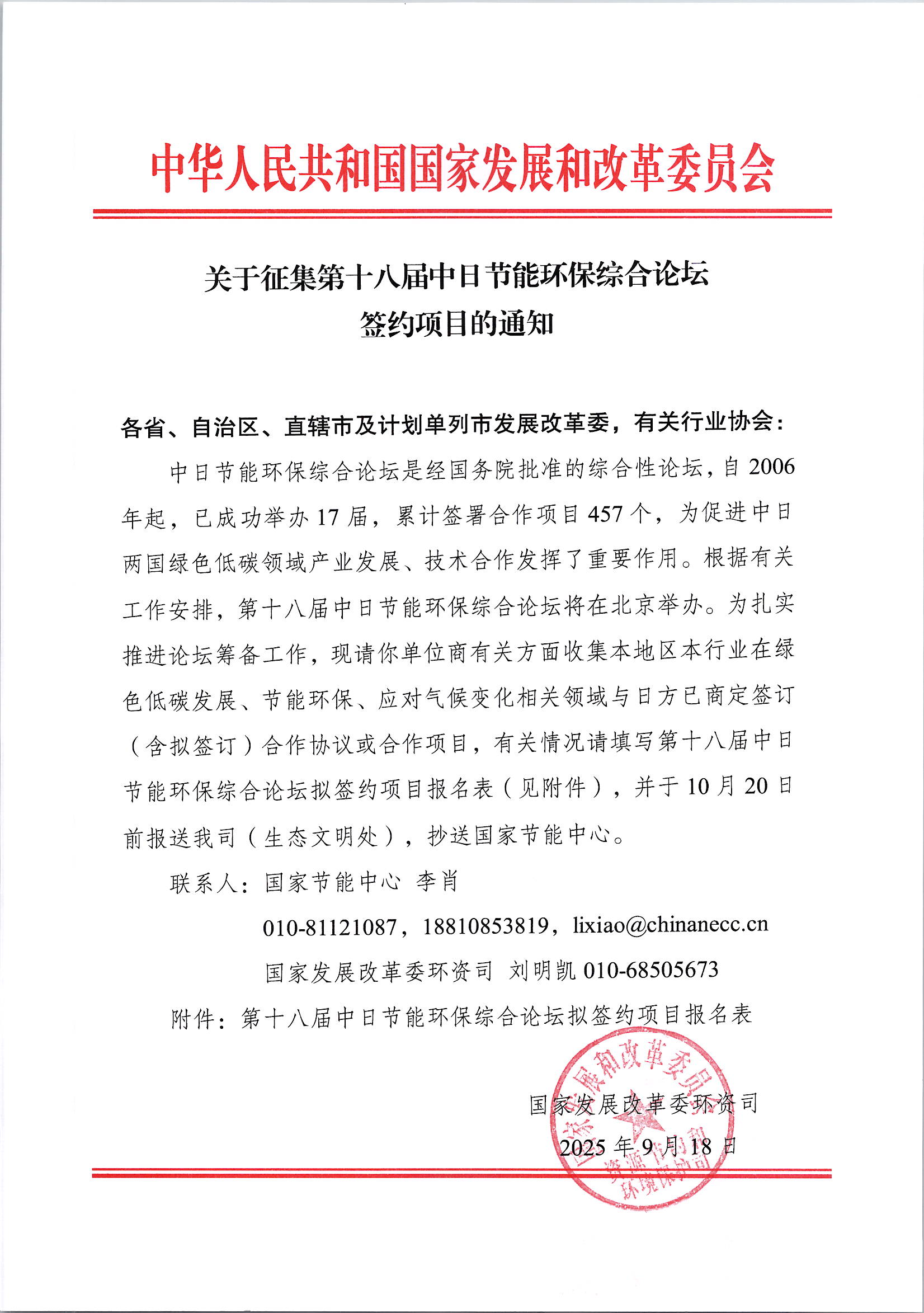 关于征集第十八届中日节能环保综合论坛签约项目的通知