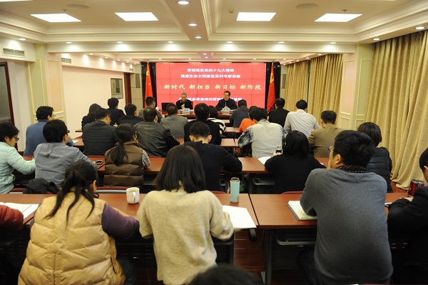 徐锭明同志运用文字、图片、视频等多媒体传播方式和生动形象的事例,从哲学、历史、现实、科技、人文、未来发展、世界大势等角度解读了十九大报告,报告系统生动、深入浅出,内涵丰富,极具思想性、理论性、指导性,与会人员听后深受启发。